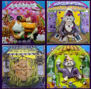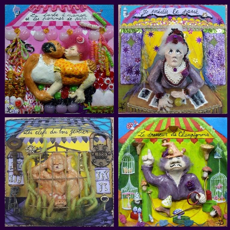 Acrylique sur bois, céramique, divers