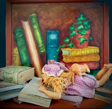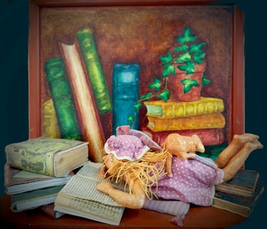 Huile sur toile, céramique, divers 70x52x15 cm