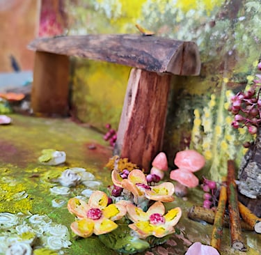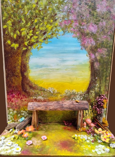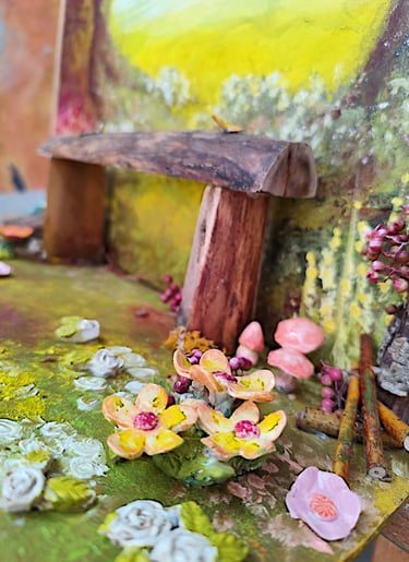 Acrylique sur bois, céramique, divers